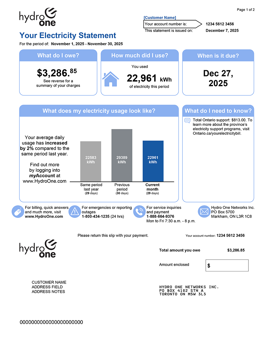 The Delivery line on your bill is the part of the bill that we are responsible for. Although we bill you for the other line items on your bill, the money collected from your bill goes to several different corporations, regulators and independent generators that make up Ontario’s deregulated electricity market. Visit our Delivery Rates page for full details.